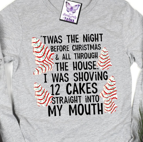 ‘‘Twas the night before Christmas & all through the house.. I was shoving 12 cakes straight into my mouth